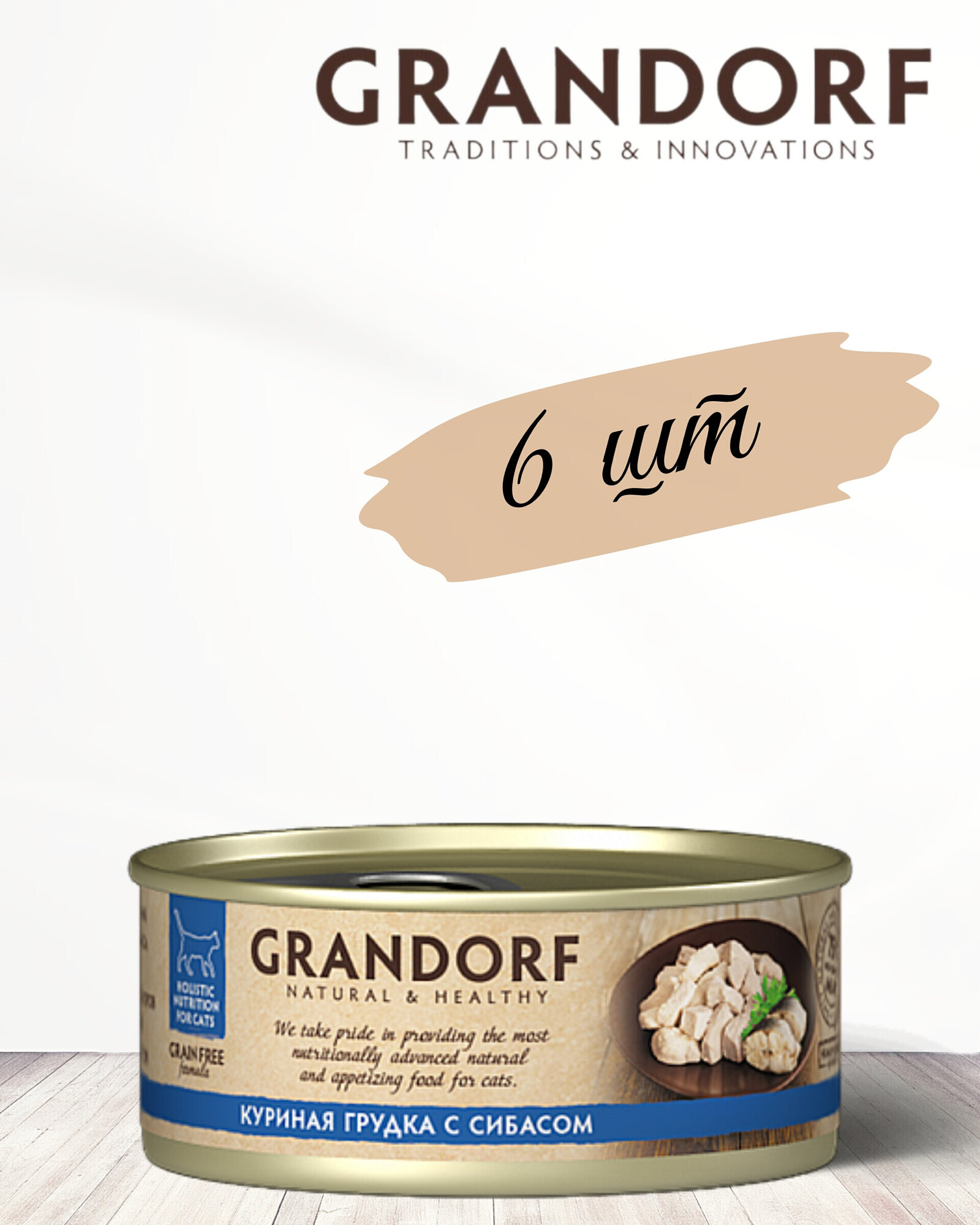 GRANDORF влажный корм для кошек, куриная грудка с сибасом, упак. 6 банок по 70 гр 1 022 ₽