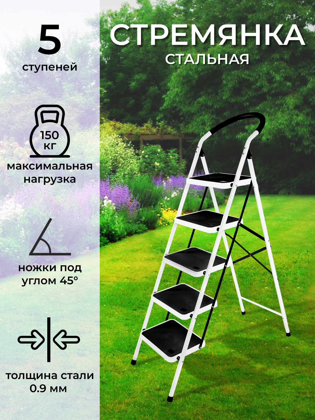 Стремянка "Сибирячка" 5 широких ступеней (max.150 кг) информация: