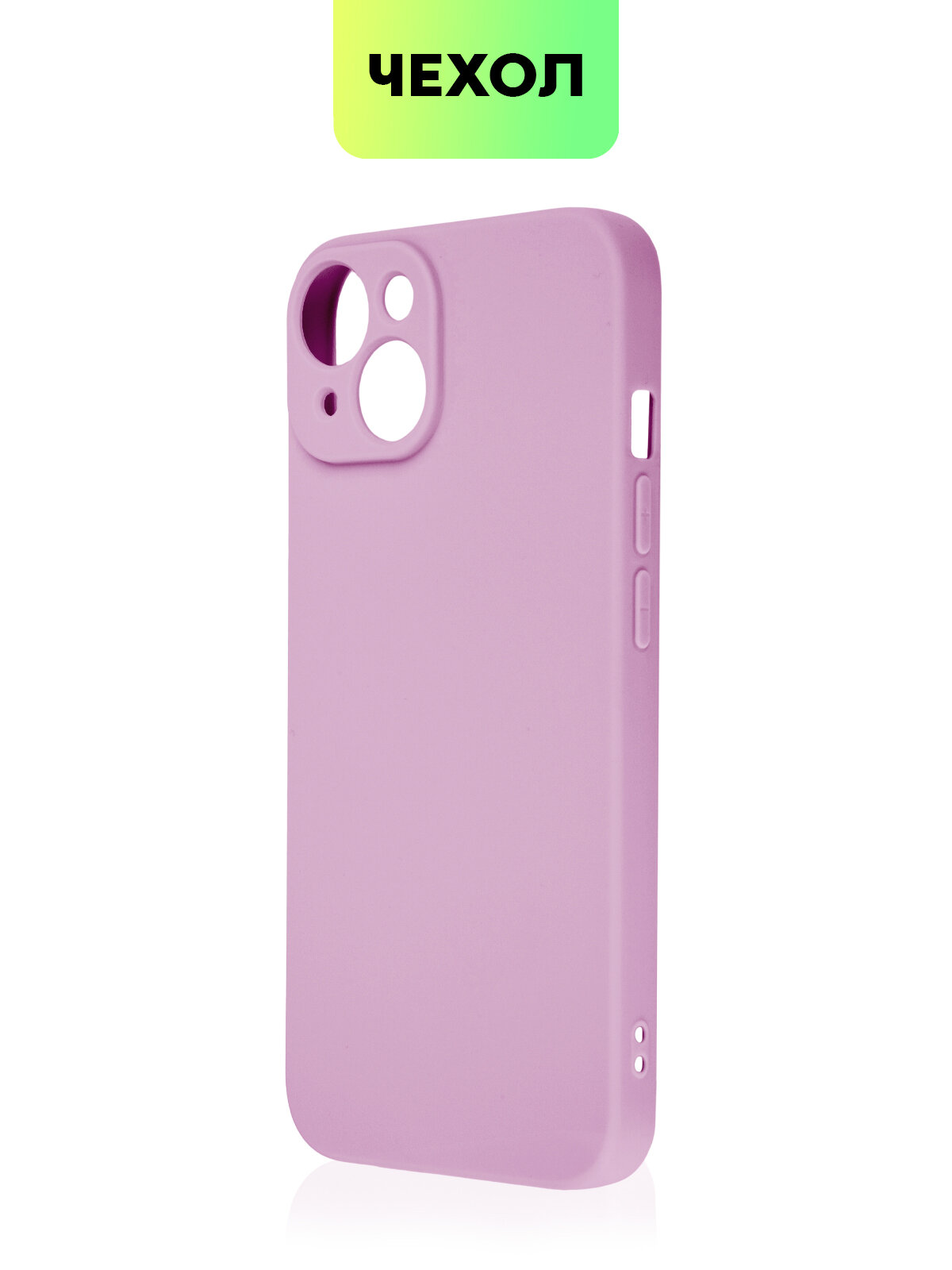BROSCORP/Силиконовый чехол-накладка для Apple iPhone 14 (Эпл Айфон 14) тонкая, с матовым покрытием и защитой вокруг модуля камер, светло-сиреневая