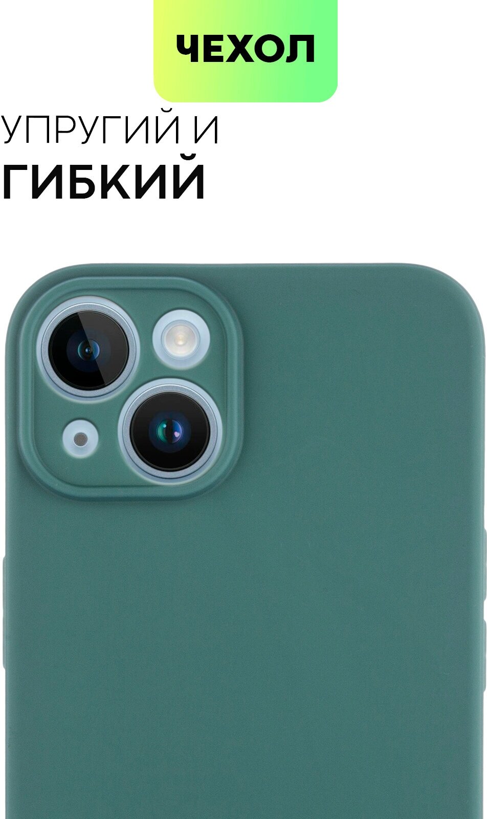 Отзывы на Чехол для Apple iPhone 14 (Эпл Айфон 14) матовый чехол с бортиком (защита) вокруг модуля камер, силиконовый чехол темно -зеленый BROSCORP