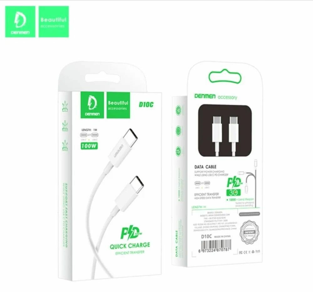 Кабель Denmen USB Type-C 100W (1m) белый информация: