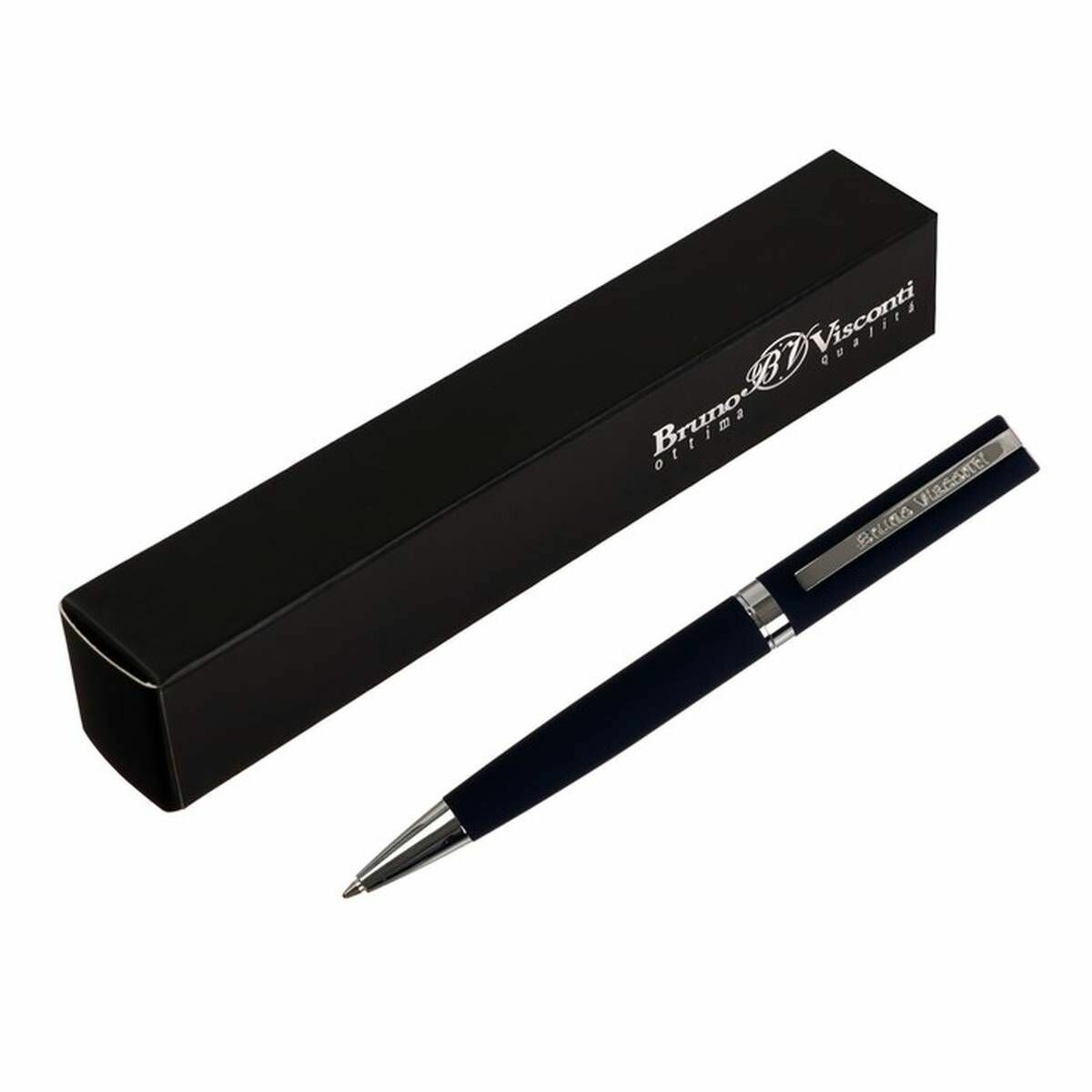 10 цен на Ручка шариковая автоматическая BrunoVisconti, 1 мм, синяя, в чёрном прямоугольном тубусе, Milano (синий металлический корпус), Арт. 20-0226/03