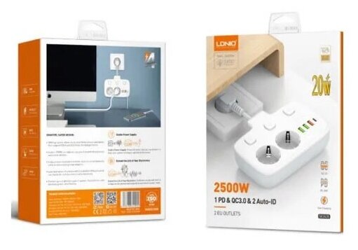 Отзывы на Сетевой фильтр LDNIO 2 розетки + 3 USB + USB-C Power Delivery, QC3.0, Белый