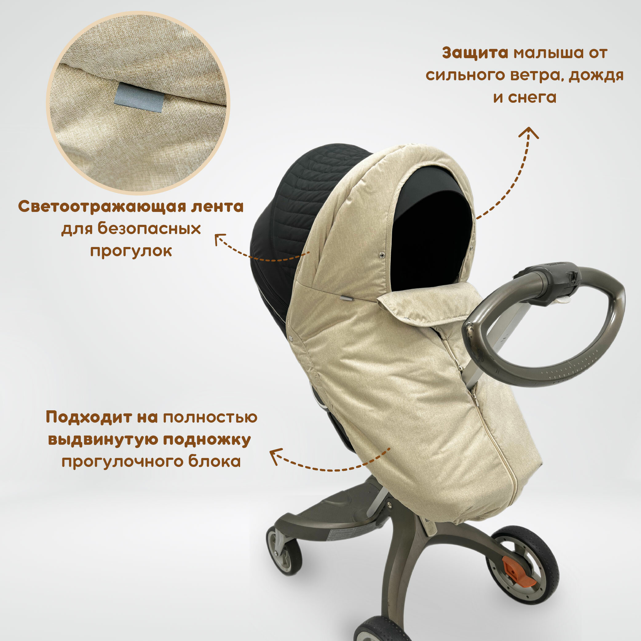 Отзывы на Ветрозащита утепленная от снега и дождя для колясок: Stokke Xplory V3-V6, X, Trailz, Crusi, Scoot, Beat, также для DSLand, Doux Bebe.