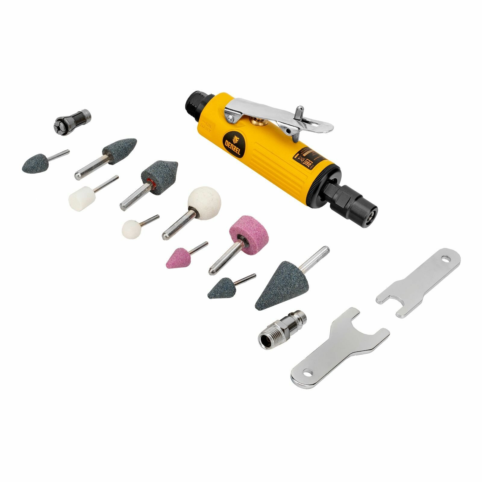 10 цен на Пневмошлифмашина прямая PGS25000, 25000 об/мин, 10 шлиф. камней, цанга - 3, 6 мм, 113 л/мин Denzel