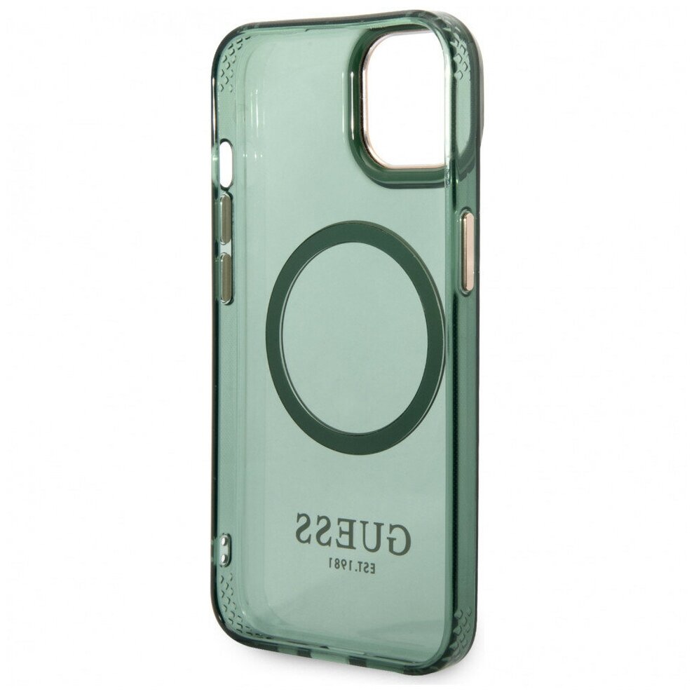 Guess чехол для iPhone 14, Metal outline Translucent зеленый/золотой (MagSafe)