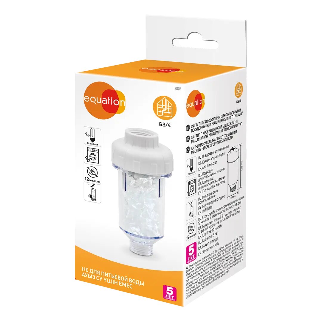 Фильтр полифосфатный Equation засыпного типа для стиральных и посудомоечных машин резьба 3/4” информация: