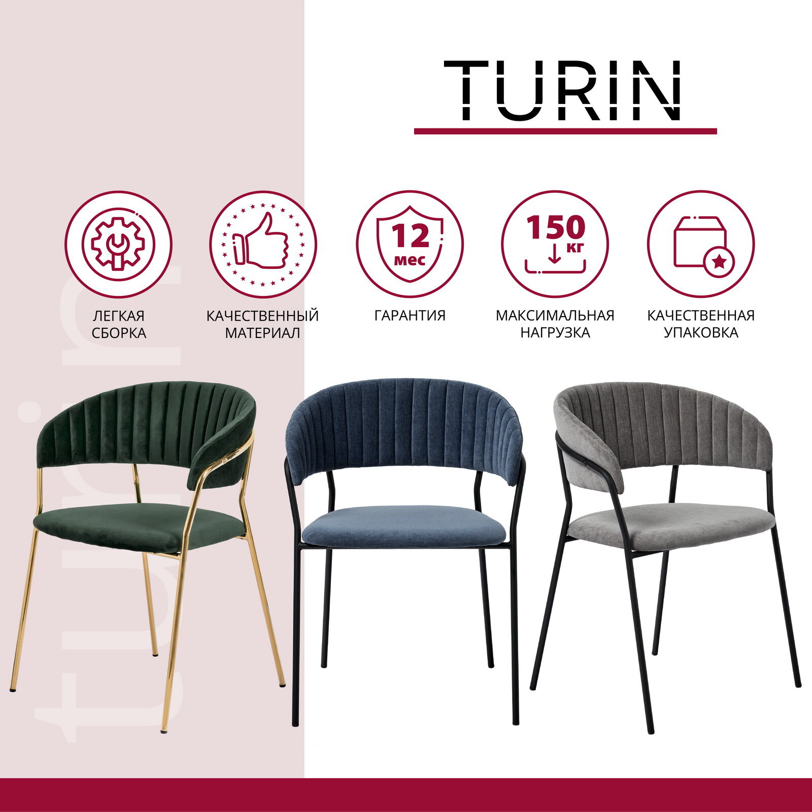 Стулья для кухни 4 шт мягкие вельвет со спинкой Turin синий с черными ножками информация: