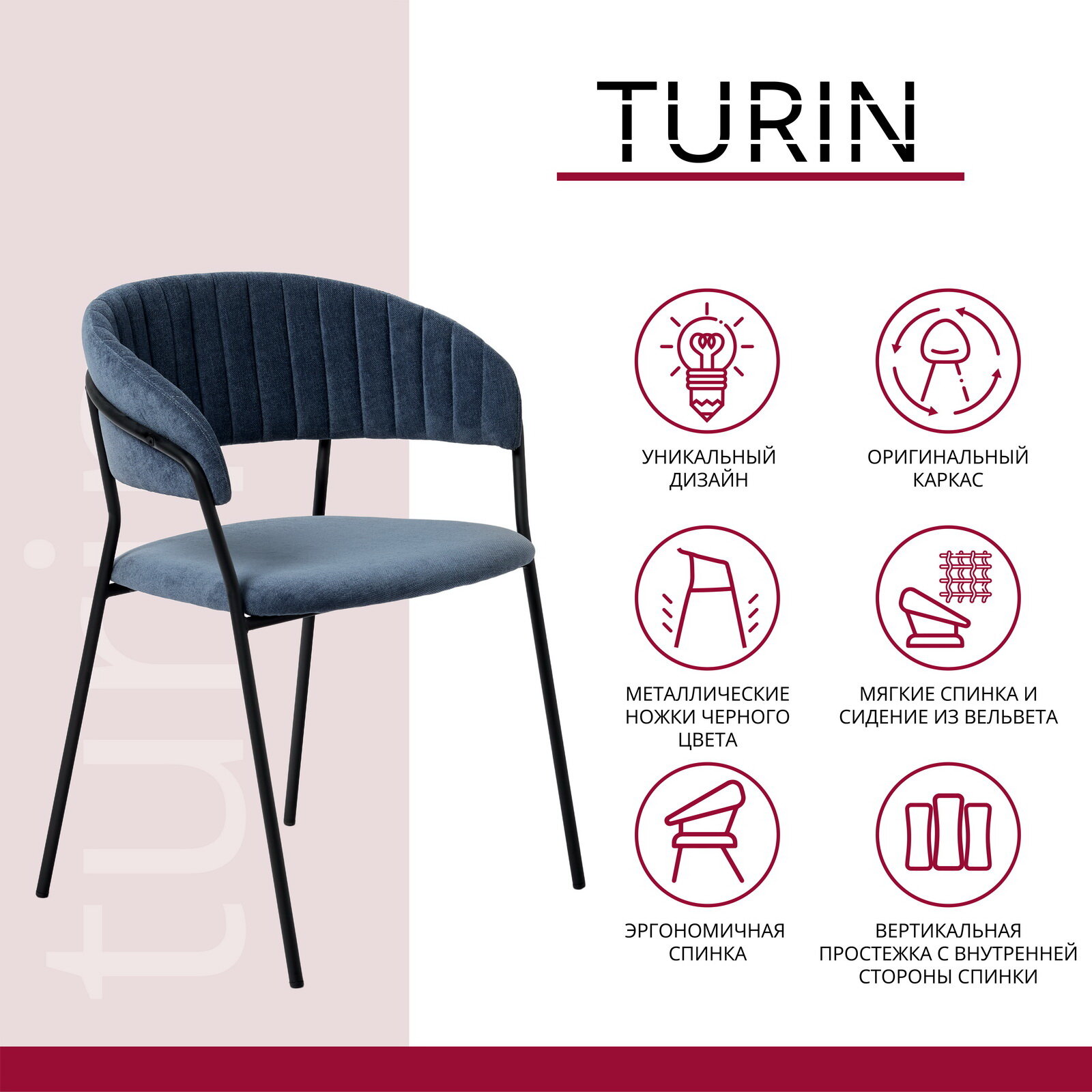 Стулья для кухни 2 шт мягкие вельвет со спинкой Turin синий с черными ножками информация: