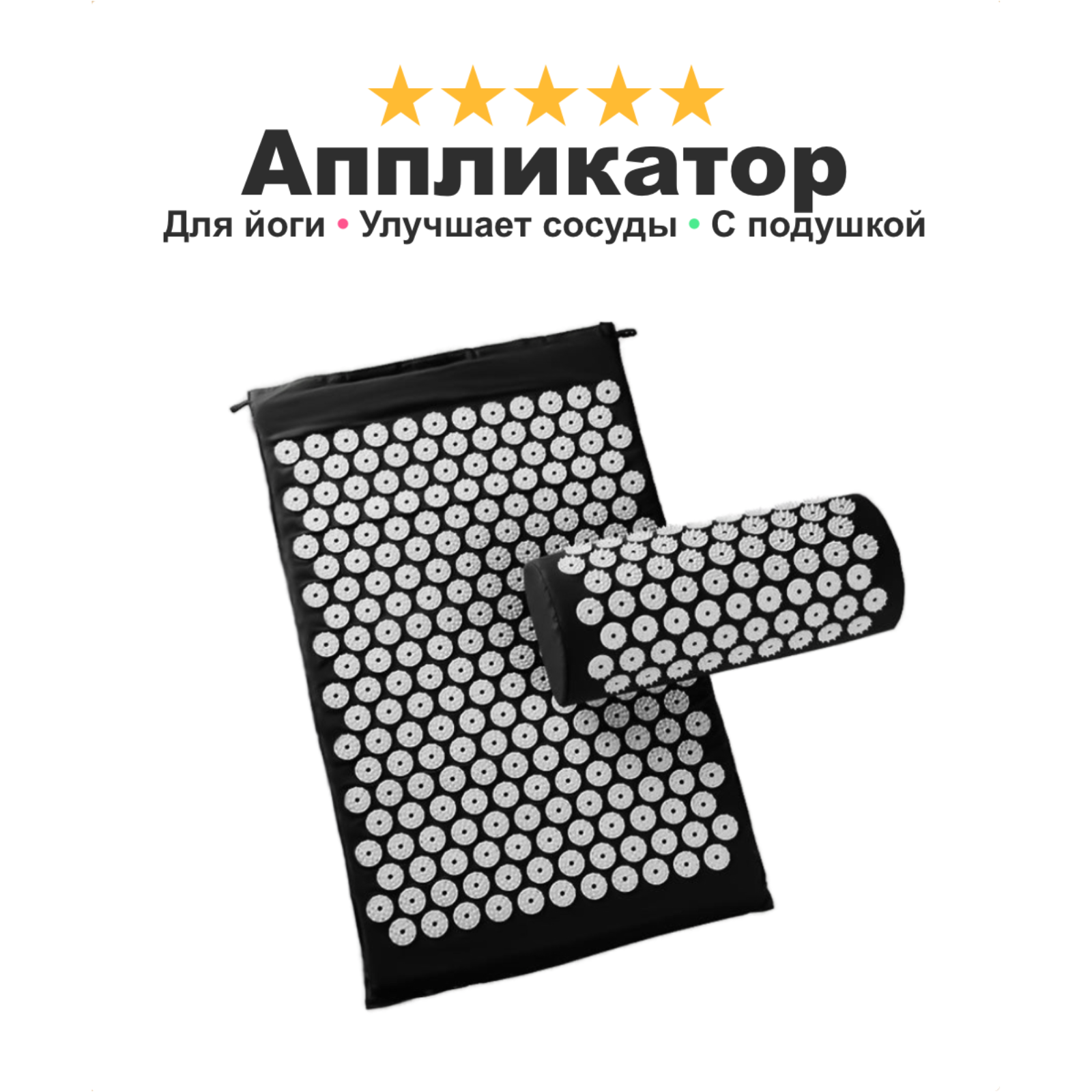 Массажный коврик с подушкой Аппликатор Кузнецова, улучшает кровообращение, от боли в спине, нормализует сон, черный 1 682 ₽