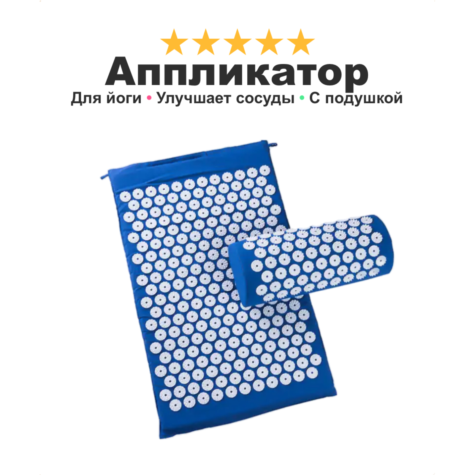 Массажный коврик с подушкой Аппликатор Кузнецова, улучшает кровообращение, от боли в спине, нормализует сон, синий 1 699 ₽