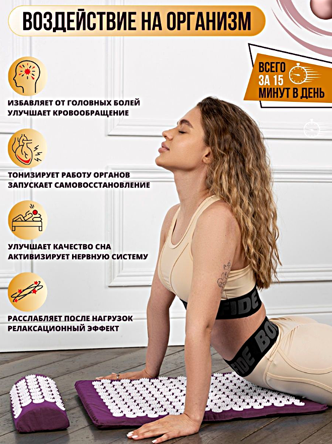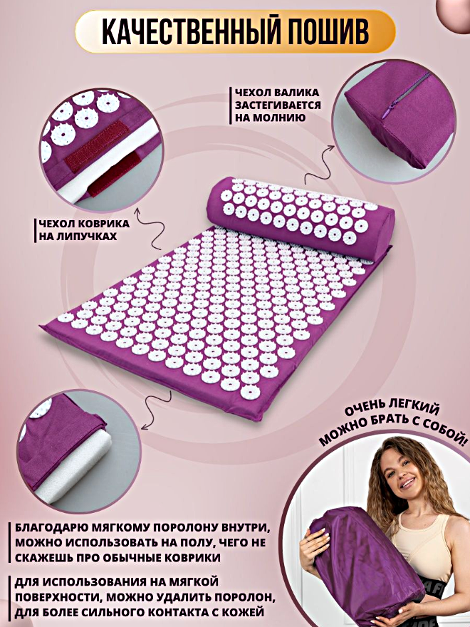 Отзывы на Аппликатор Кузнецова массажный коврик для кровообращения от боли в спине, шеи, Акупунктурный коврик, Фиолетовый