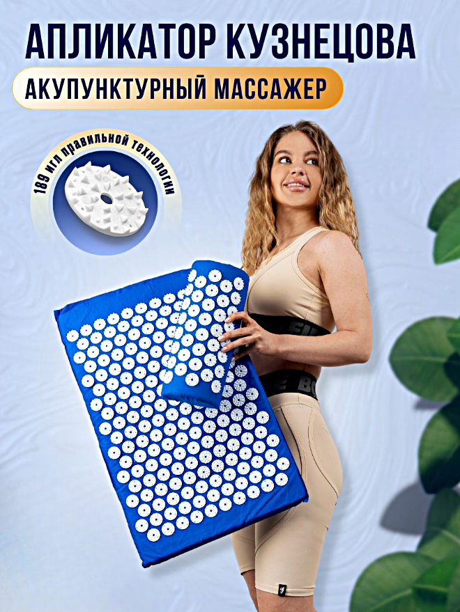 Аппликатор Кузнецова массажный коврик для кровообращения от боли в спине, шеи, Акупунктурный коврик, Синий информация: