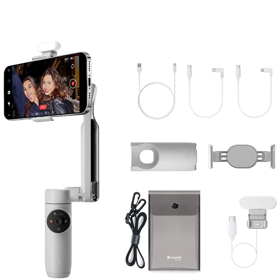 Набор мобильный стабилизатор Insta360 Flow с автоматическим отслеживанием, 3-осевая стабилизация и аксессуары Insta360 Flow Stone Grey Creator Kit информация: