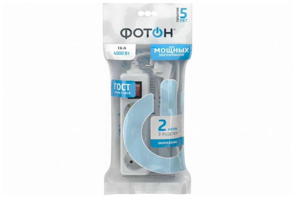Отзывы на Удлинитель фотон 16-23ЕS, 3 розетки, с/з, 16А / 4000 Вт белый 2 м 3