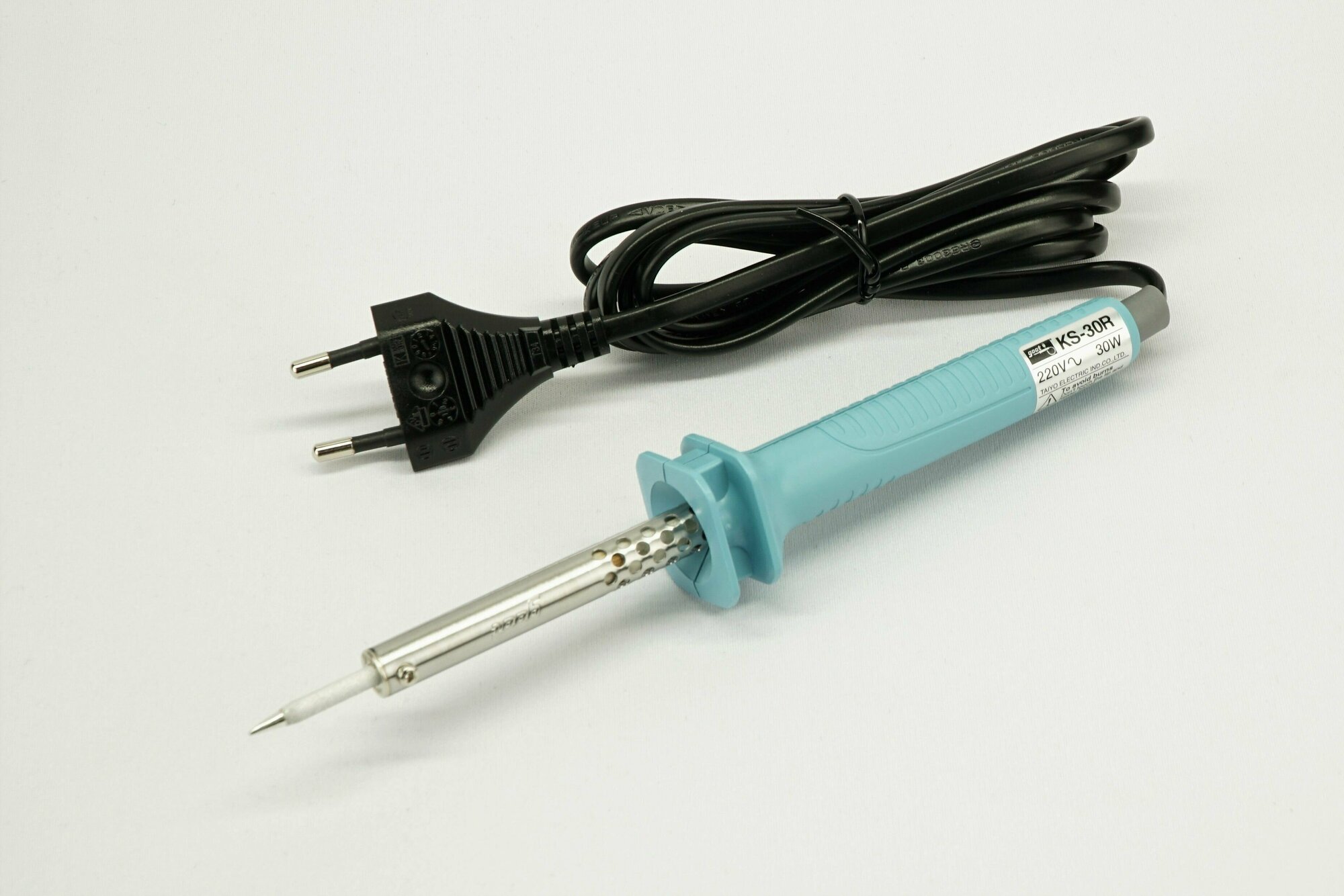 Паяльник электрический goot KS-30R с долговечным жалом (нихромовый нагреватель) для пайки плат, микросхем, радиодеталей, 220В / 30Вт, Япония
