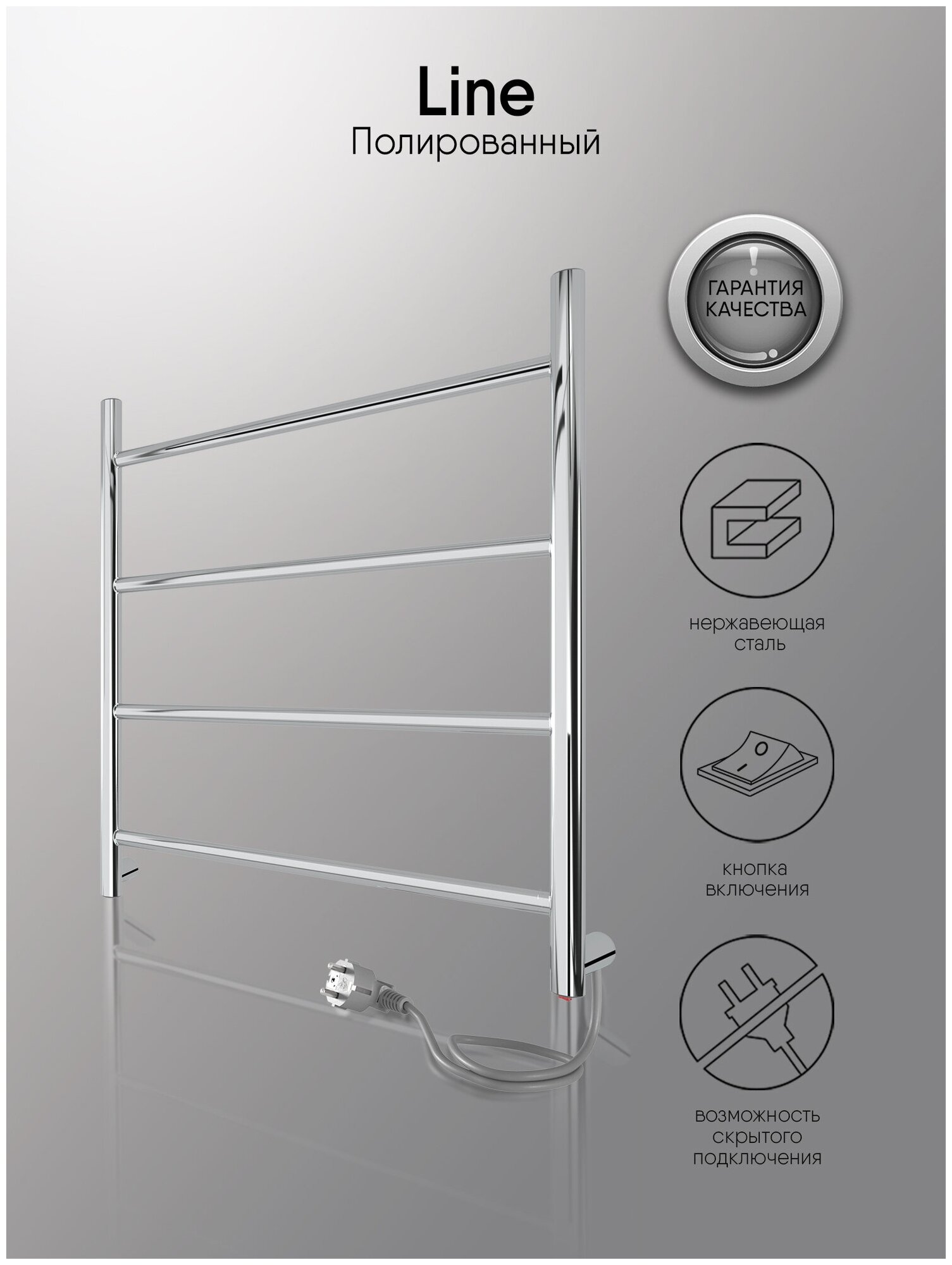 INDIGO Полотенцесушитель Line б/п (electro) 50/50 (скр.монтаж, унив.подкл.R/L, Полиров.) LСLE50-50R информация: