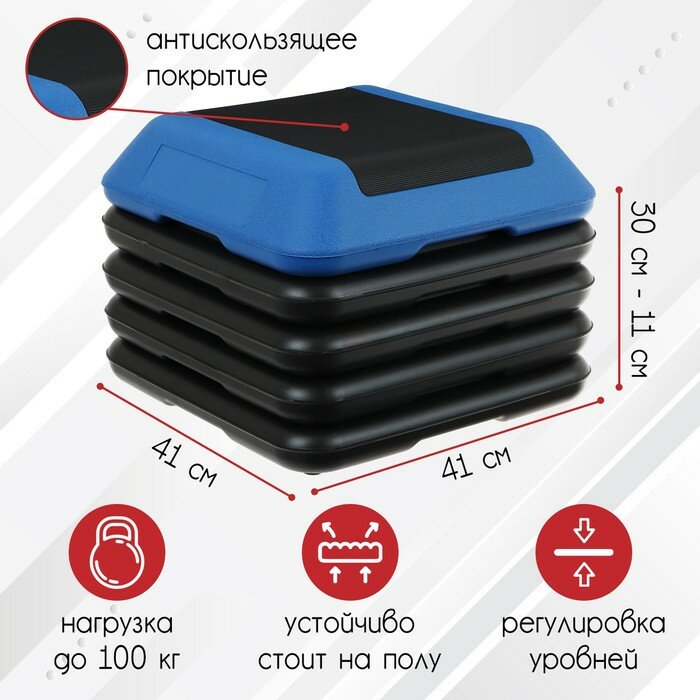 Степ-платформа 5-уровневая, размер 41 х 41 см, цвет синий, до 100 кг информация: