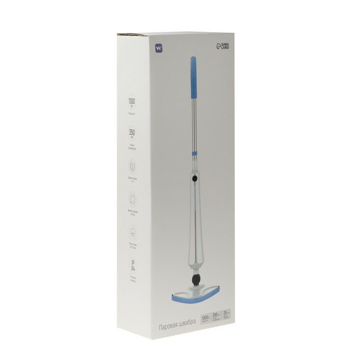Паровая швабра Windigo WSM-01, 1300 Вт, 350 мл, время нагрева 25 сек, шнур 4 м, бело-голубой информация: