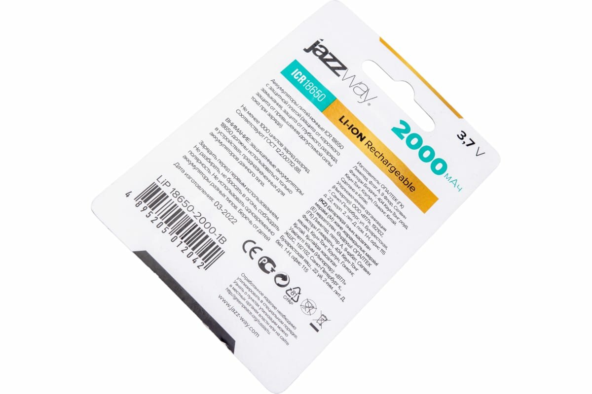 Аккумулятор JAZZWAY Li-Ion 18650 2000 мАч с защитой [ / ] информация: