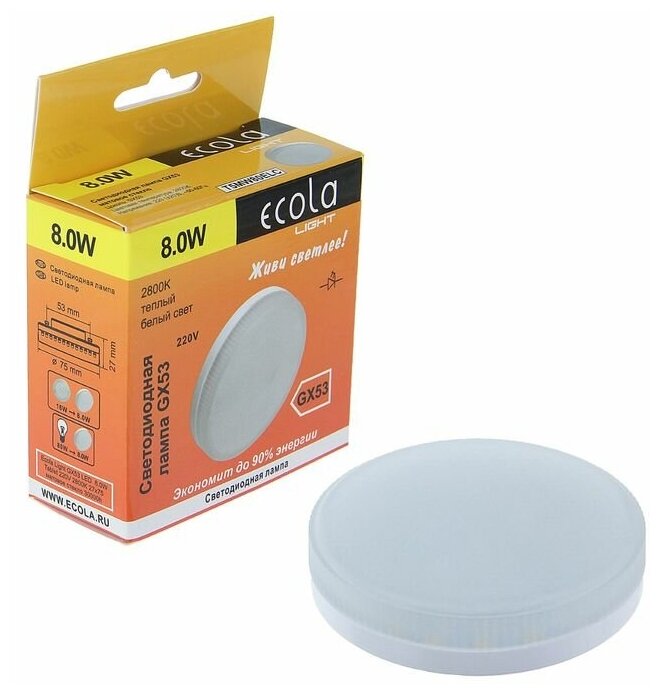 Отзывы на Лампа светодиодная Ecola, GX53, 8 Вт, 2800 K, 220 В, 27x75 мм, матовое стекло./В упаковке шт: 1