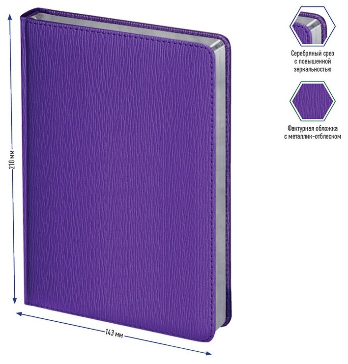 Ежедневник недатированный, A5, 160л., кожзам, Berlingo "Starlight", сер. срез, фиолетовый информация: