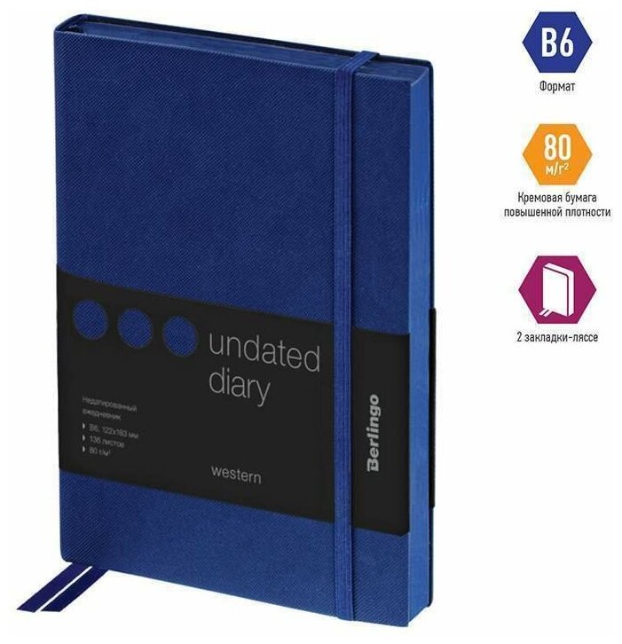 Ежедневник недатированный Berlingo B6, 136 листов, кожзам, "Western", с резинкой, синий (UD0_85602) информация: