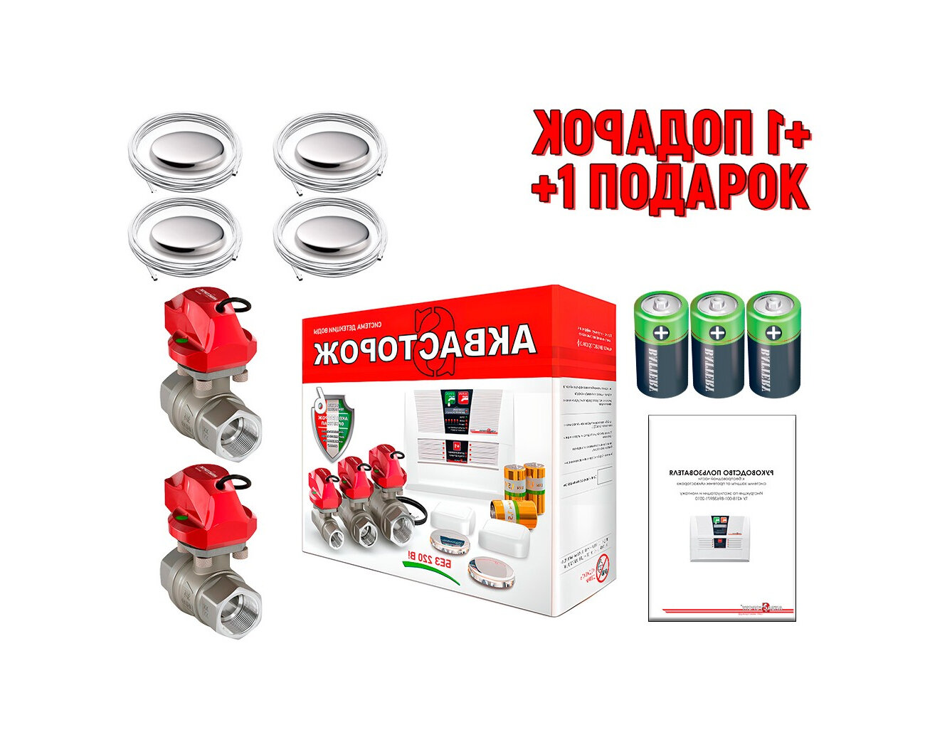 Система контроля протечки воды Аква Сторож Набор 22:65-3/4 (Z68430OK) RUB, Оригинал, К+ (+ подарок). Сигнализатор протечки. информация:
