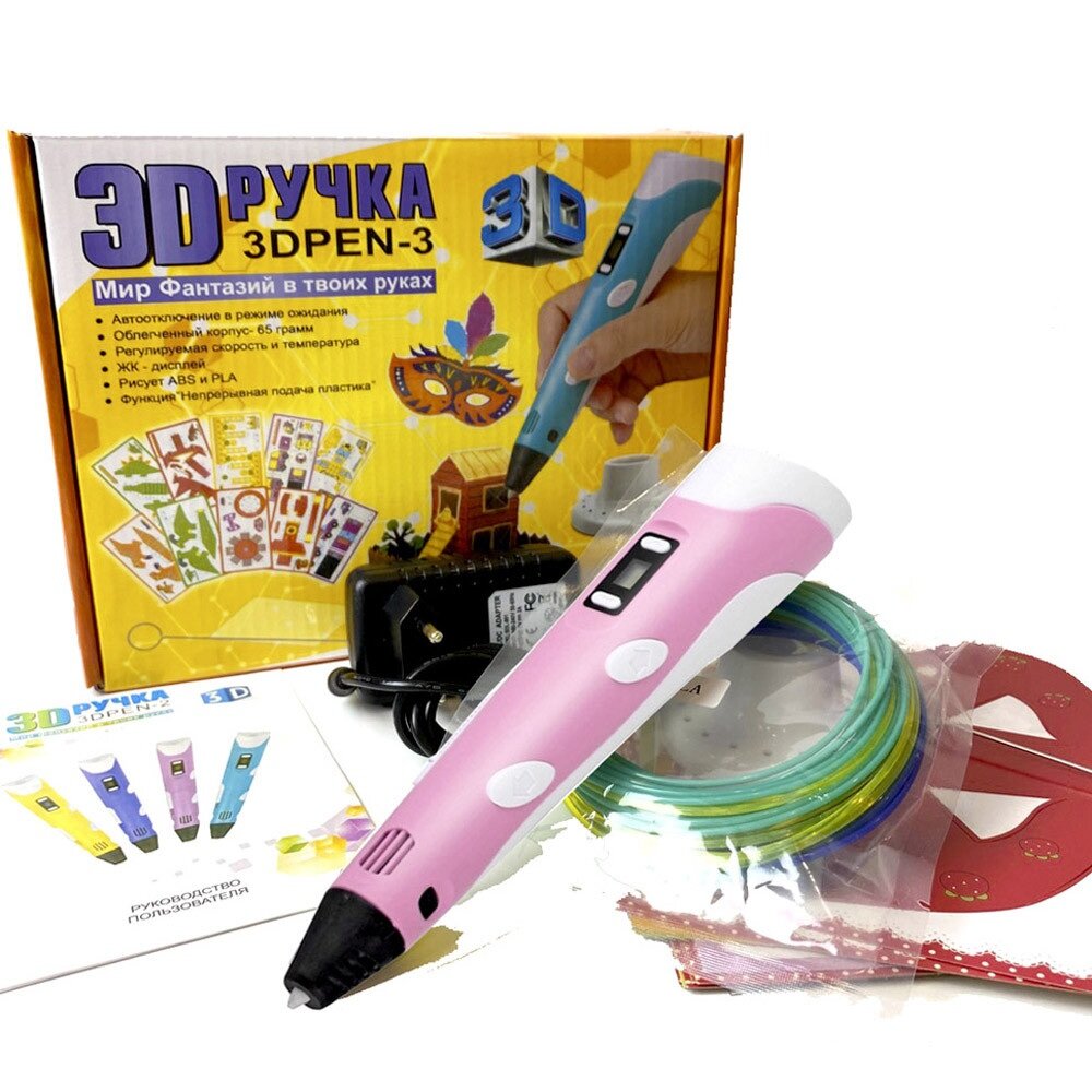 3д ручка с набором пластика и трафаретами, 3d pen-3, 3d ручка (розовая), подарок для ребенка информация: