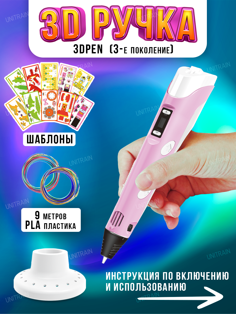 10 цен на 3D 3д ручка с набором пластика (3 цвета) и трафаретами, (3-е поколение)