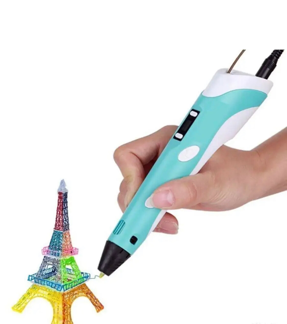 3D ручка второго поколения 3D Pen-2 для детей / С дисплеем и набором пластика PLA (3 цвета, 9 метров), голубой