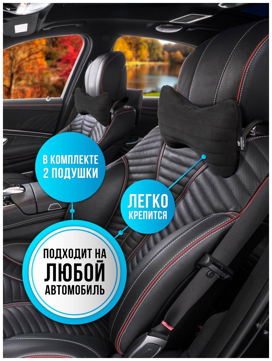 10 цен на BARASHKOV/ Комплект подушка для авто "SECRET" велюр под голову. 2 шт. Автомобильная подушка под шею на подголовник. Чернильный