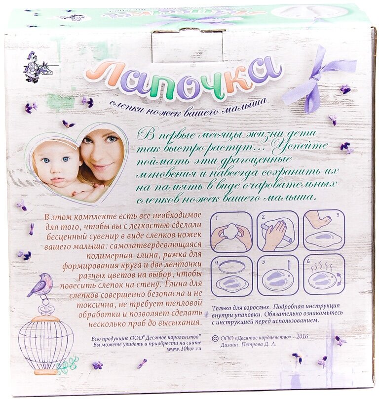 | Дополнительная информация | Набор для творчества Десятое королевство Лапочка, слепки ножек |