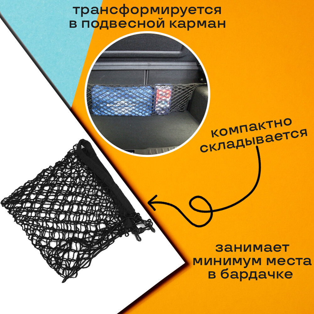 Карман в багажник на липучке универсальный / сетка органайзер в автомобиль / держатель крепление в машину
