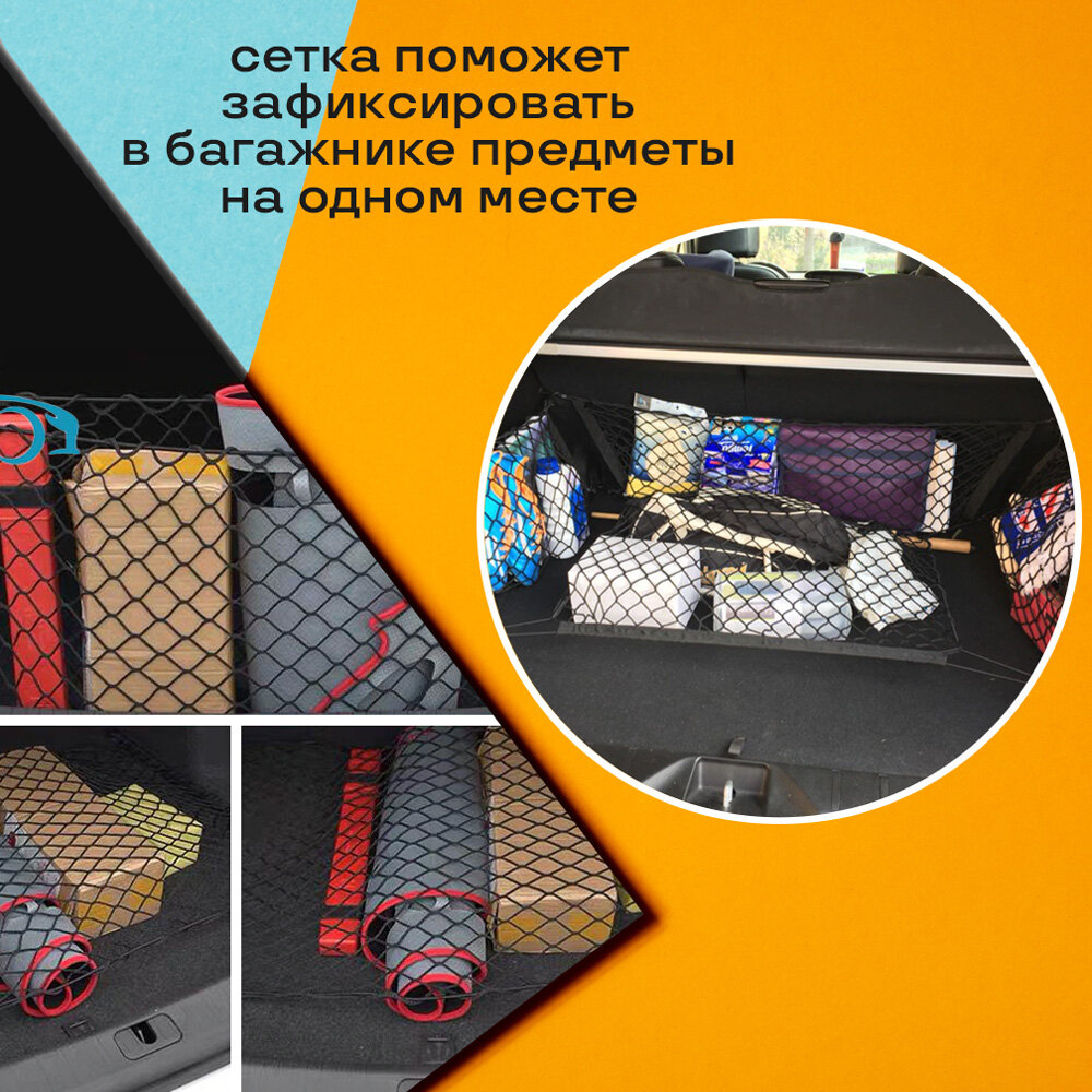Отзывы на Сетка органайзер в багажник для автомобиля 90x55 см на карабинах InnoZone
