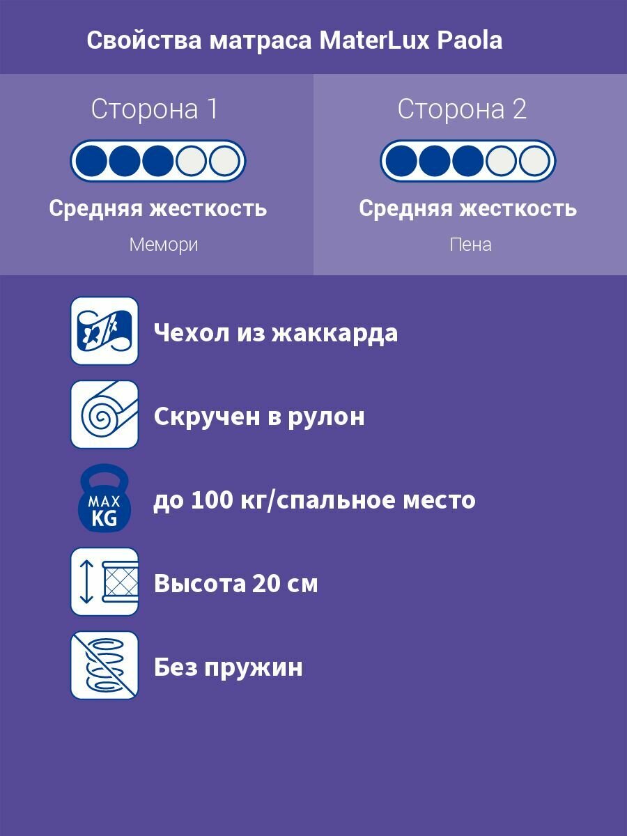 Матрас Materlux Paola, Размер 80 x 165 см 18 896 ₽