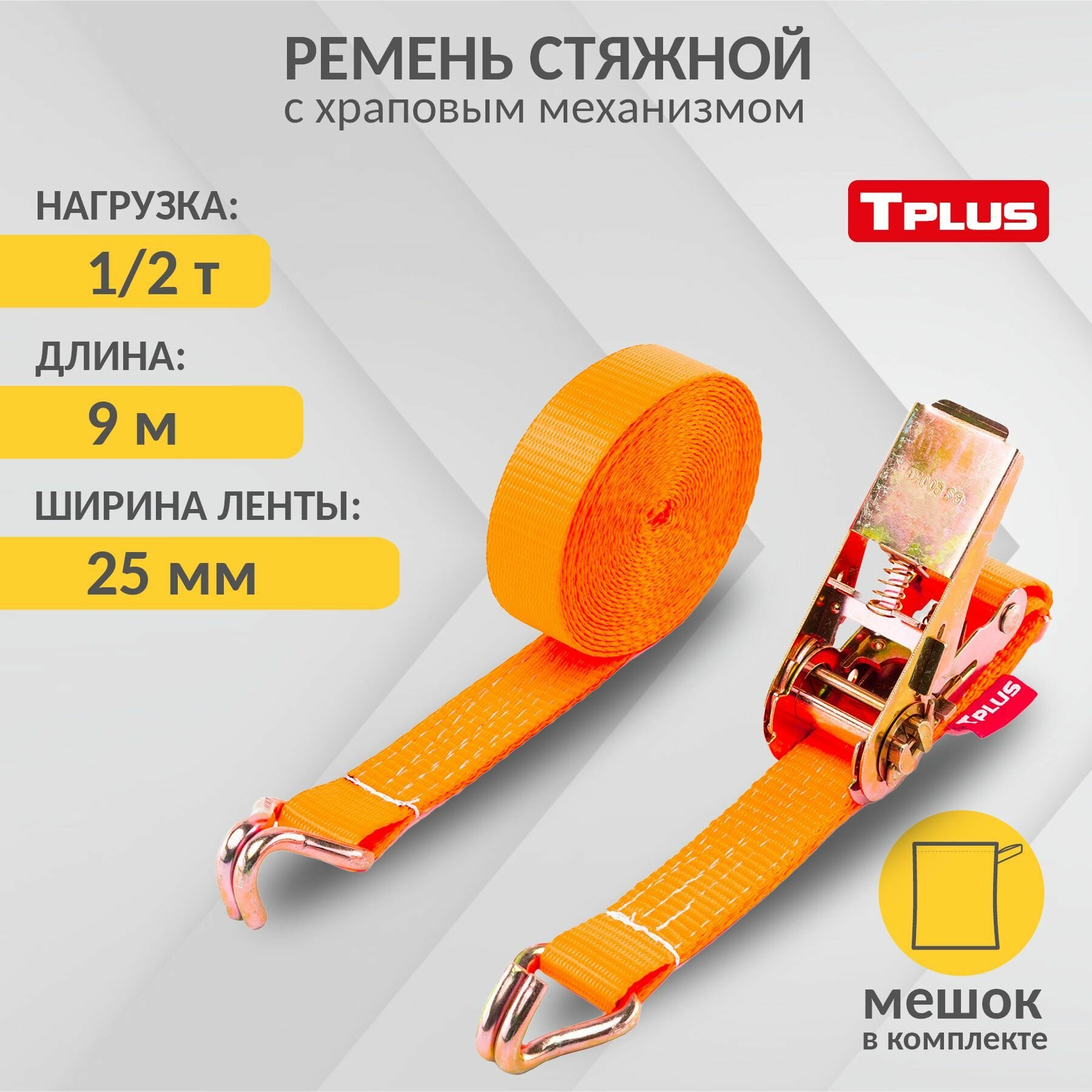 Ремень стяжной Tplus 1/2 т., 9м.(ширина ленты 25 мм), T000670 информация:
