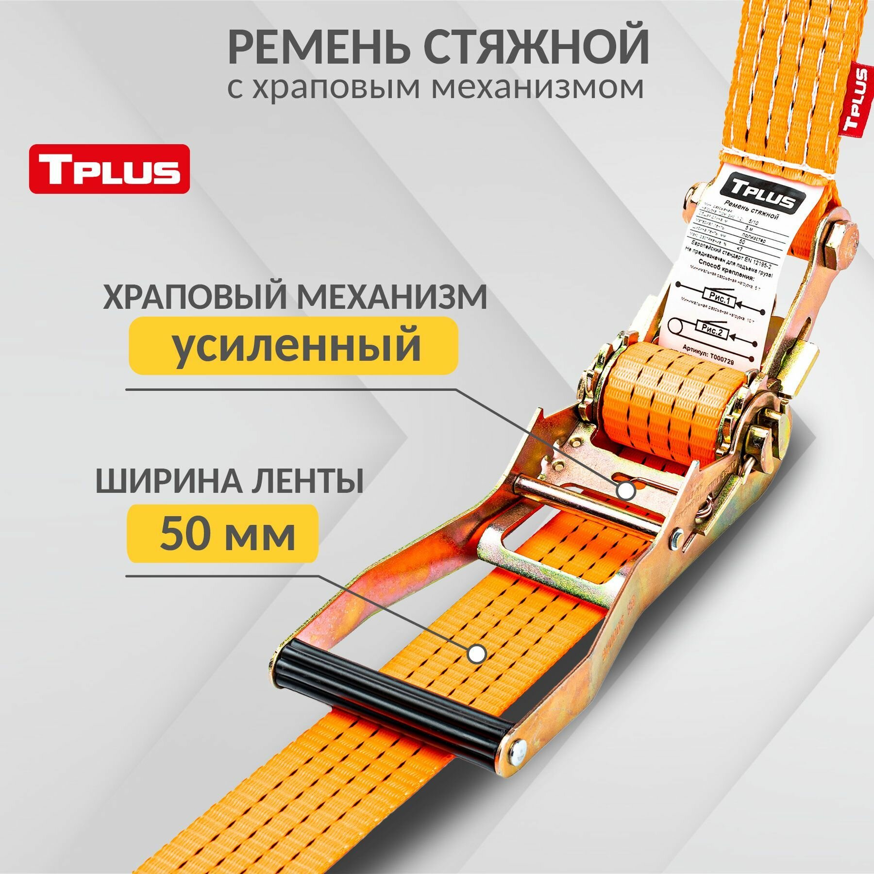 Стяжной ремень Tplus T000739 (5т/10т, 8 м) информация: