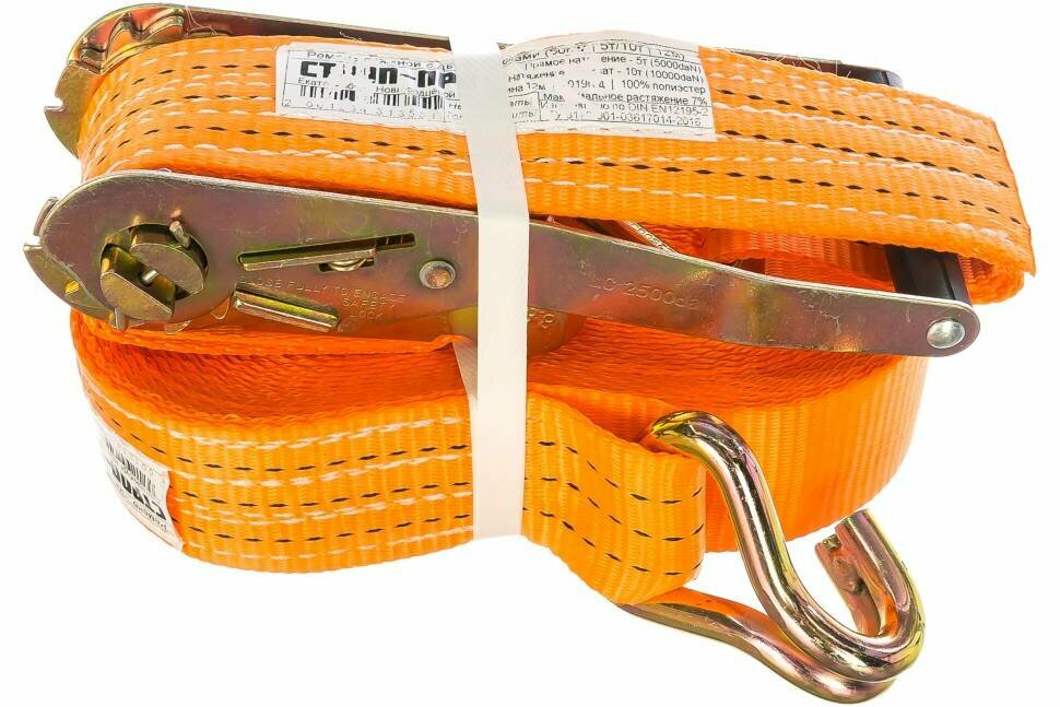 10 цен на Стяжной ремень с крюками (50мм, 5т, 12м) строп-про SP03011