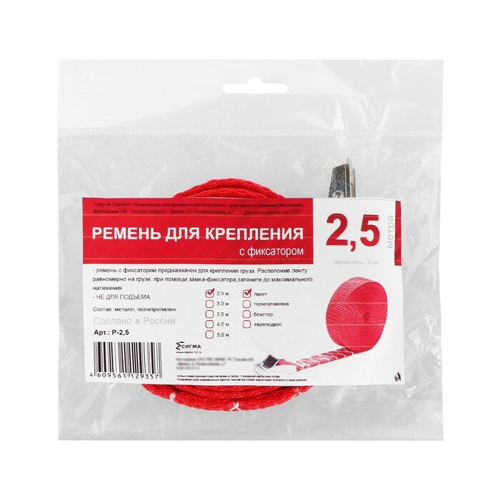 Ремень для крепления груза с фиксатором, 2.5 м информация: