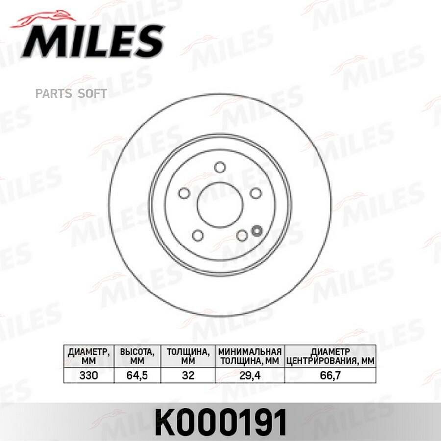 MILES K000191 Диск тормозной передний вентилируемый MERCEDES (W211) D 330мм. информация: