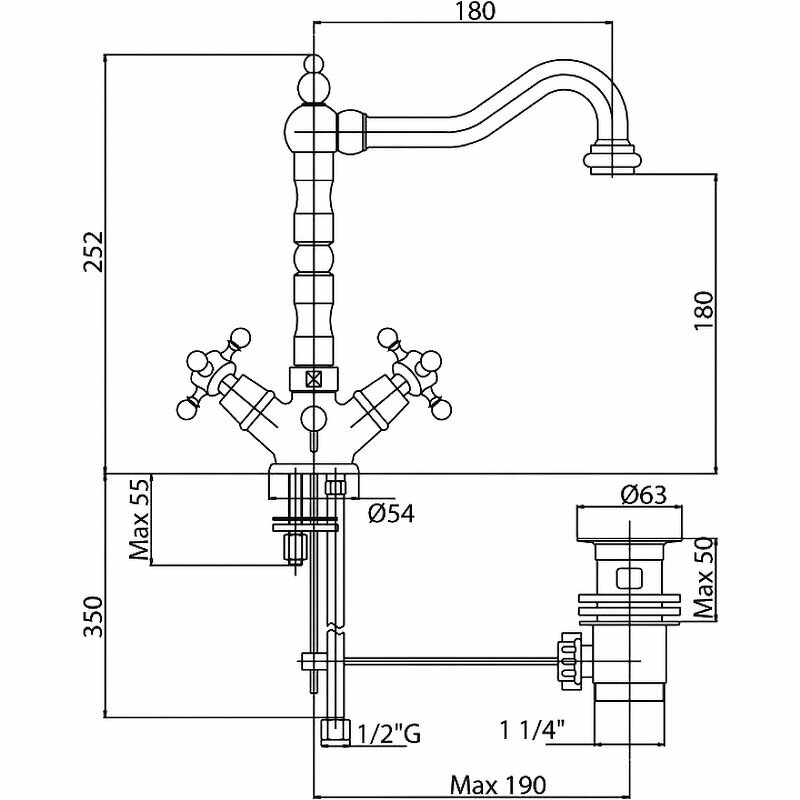 Смеситель Cezares Lord LORD-LS2-03/24 для раковины с донным клапаном 44 364 ₽