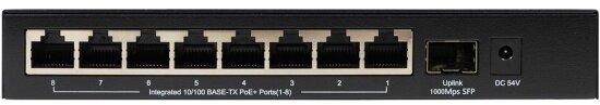 Коммутатор неуправляемый PoE-коммутатор, 8x100Base-TX PoE, 1x1000Base-X SFP, PoE-бюджет 80 вт, корпус металл 10 057 ₽