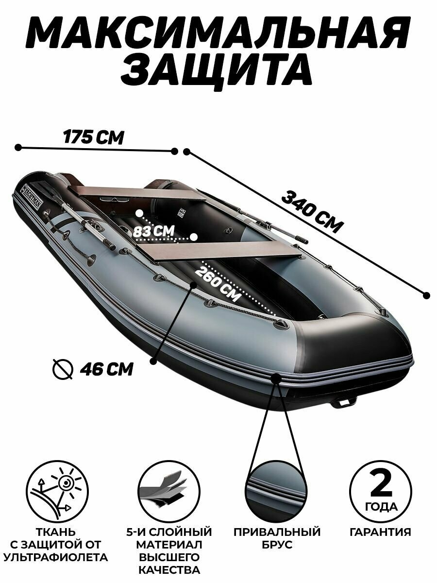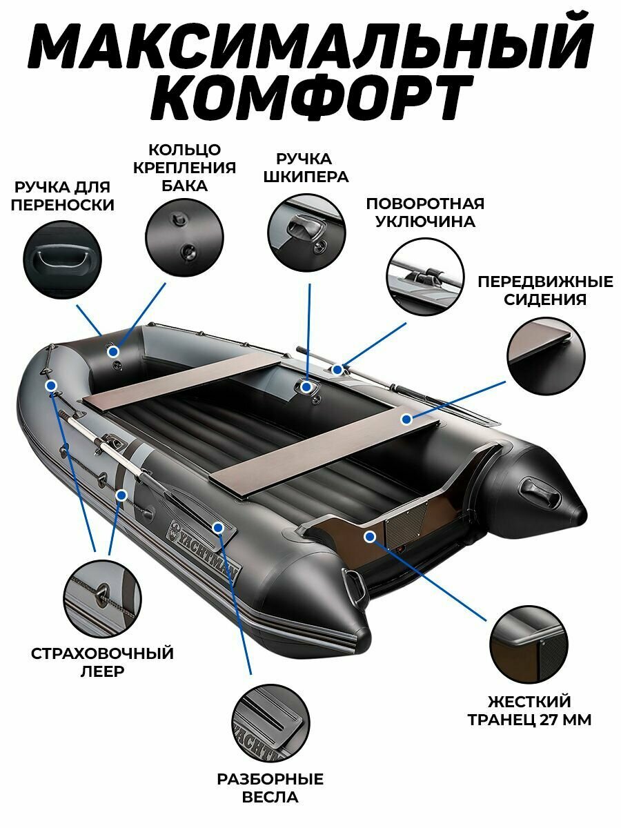 Надувная лодка ПВХ под мотор YACHTMAN 340 НДНД, надувное дно, с усилением, серый/чёрный информация: