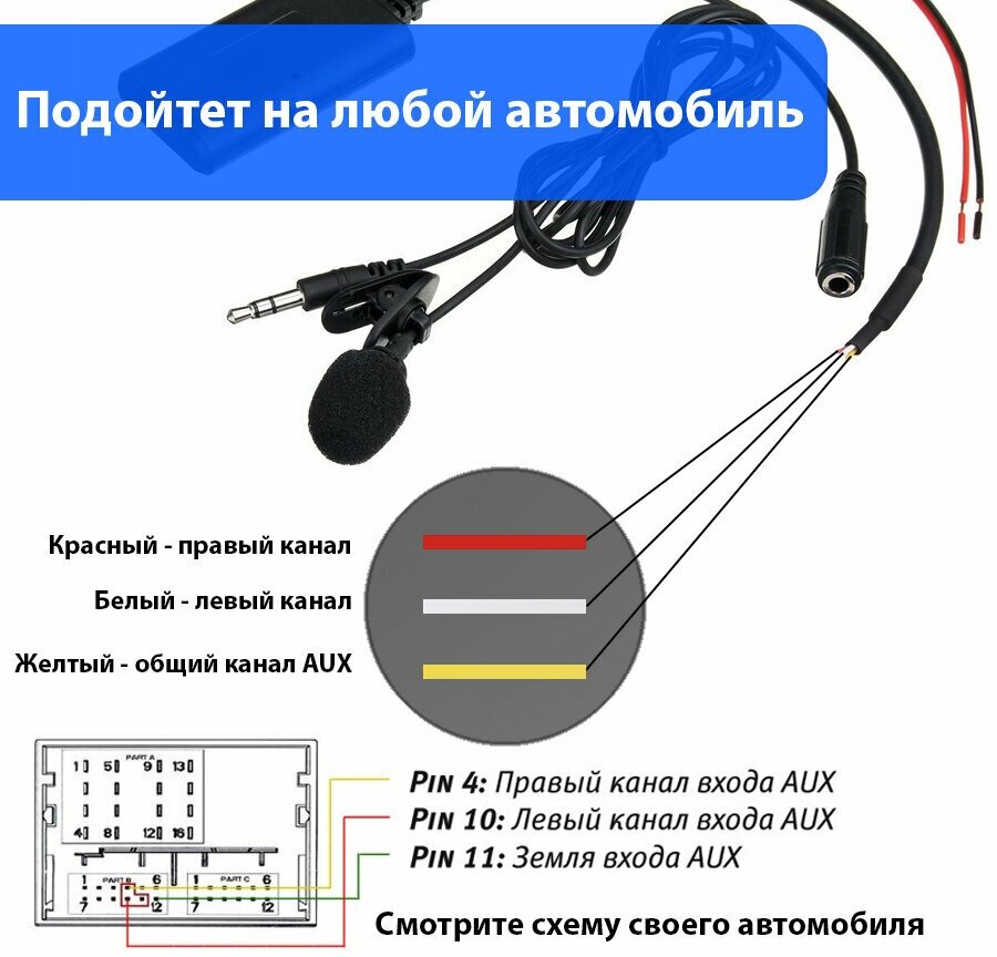 Штатный блютуз 5.0 для автомобиля с микрофоном для громкой связи, для volkswagen, для peugeot 12 pin, bluetooth в магнитолу, автоблютуз. информация: