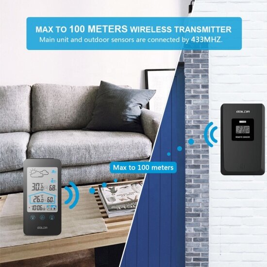 Отзывы на Метеостанция Baldr B0201WST2H2-BLACK c показаниями температуры и влажности внутри и снаружи помещения, черная