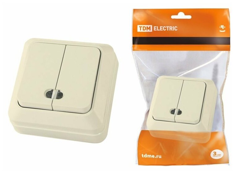 Выключатель двухклавишный накл. крем Ладога TDM 1801-0004 информация: