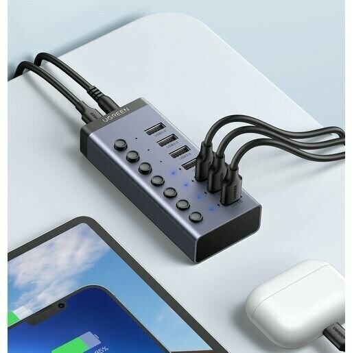 Хаб UGREEN CM481 (90307) USB-C to 7-Port USB-A 3.0 Hub DC 12V EU. Цвет: черный 8 999 ₽