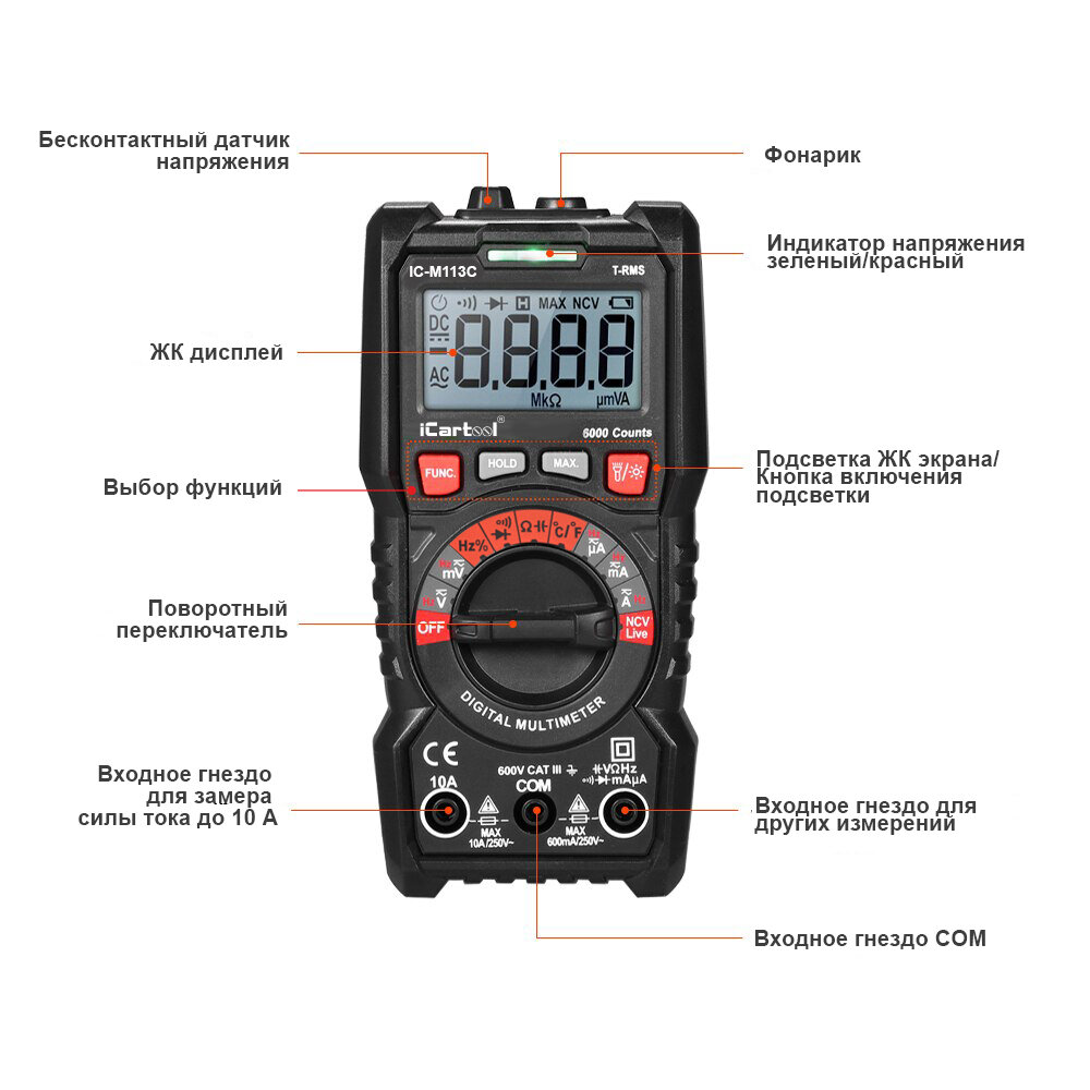 Смарт мультиметр iCartool IC-M113C ICARTOOL IC-M113C | цена за 1 шт информация: