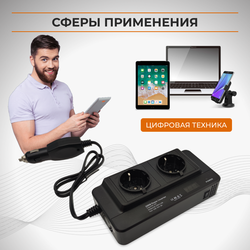10 цен на Автомобильный инвертор 200 Вт - 2 розетки 220В + 4 USB, автоинвертор, преобразователь напряжения